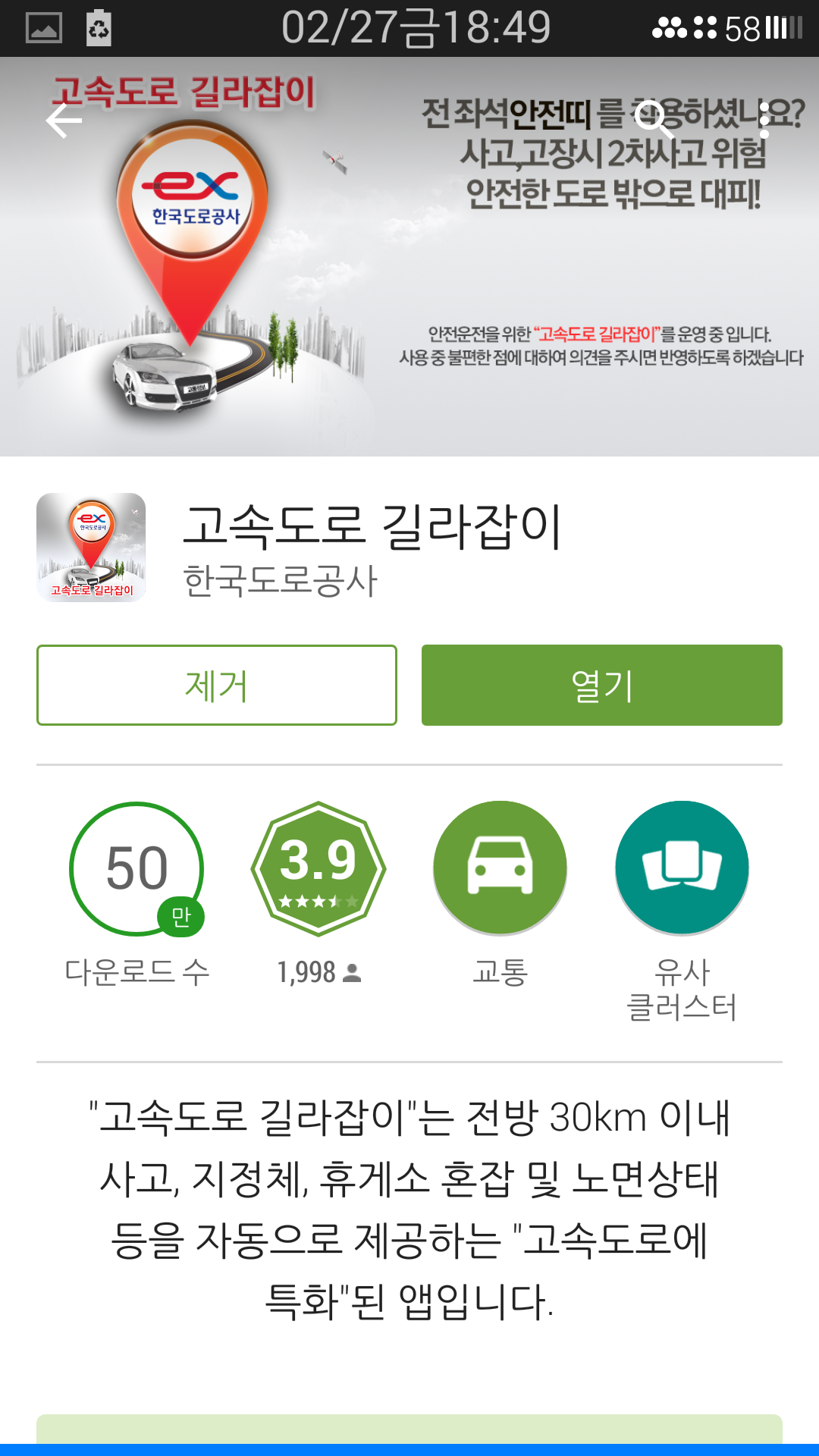 지난 설에 고속도로앱 업글하다 고속도로 길라잡이란 앱이 있길래 설치 해 보았더니ㅊ어~ 내비게이션이더라구요. 사용하기도 간편해 이거 물건이네 하고 실전투입 했더니 음성안내가 먹통^^. 질문을 남겼더니 재설치 해보라고... 삭제후 재설치 모의주행 해 보니 소리가 납니다. 소통정보 CCTV도 바로 볼수있어 좋네요. 잘 아시겠지만 소개 흐 봅니다.
