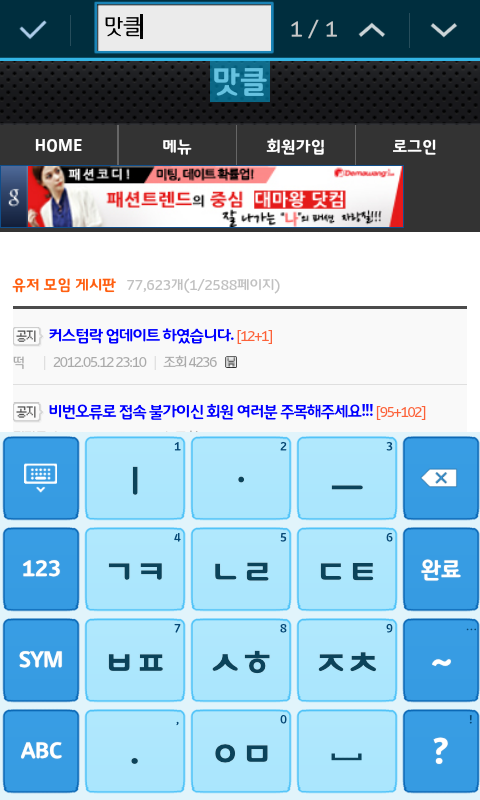 ※ 순정브라우저 메뉴 중 '페이지 내에서 검색' 에서 문자입력시 브라우저 강종되는 버그 해결됐습니다
